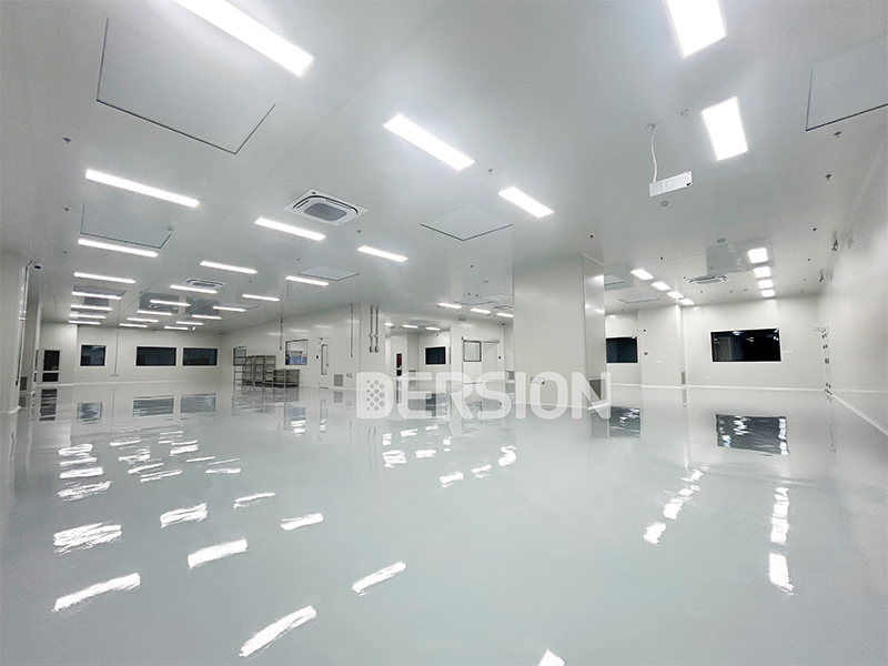 本无尘室工程项目结合气体压力容器生产特性,采用多等级洁净分区设计,涵盖class 100级、class 1K级、class 10K级、class 100K级四种洁净等级,温度控制在18-28℃舒适性范围,湿度不做额外控制,适配产品生产的核心需求。其中class 100级(百级)区采用高架地板垂直层流设计,有效保障洁净气流均匀分布,杜绝微粒污染;其余区域采用环氧自流平地面,具备耐磨、易清洁、防积尘的优势。围护结构选用净化岩棉板搭配中空玻璃,兼顾洁净性与保温性,同时配备人淋、货淋等专业净化设备,从人流、物流源头阻断外界污染,全方位保障生产环境达标,并且人淋、货淋通道分开设置,避免交叉污染。