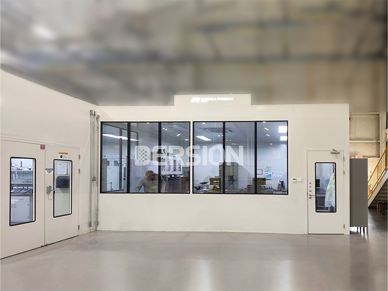 本项目为德信致远为该客户打造的第四期洁净室,专为食品领域应用设计,坐落于印第安纳州,建筑面积90余平方米,洁净度达万级标准。洁净室采用手工岩棉+双层中空玻璃围护结构,兼顾密闭性与易清洁性,搭配PVC地面,适配食品行业卫生需求。FFU系统选用直流风机,辅以高效过滤器保障净化效率,配备7寸液晶触摸屏控制系统,可实现FFU开关、工作/值班模式切换、风速调节及故障报警功能,同时支持FFU与照明分组控制,再搭配吸顶空调控温,全方位满足食品相关原料处理的洁净与环境管控需求。