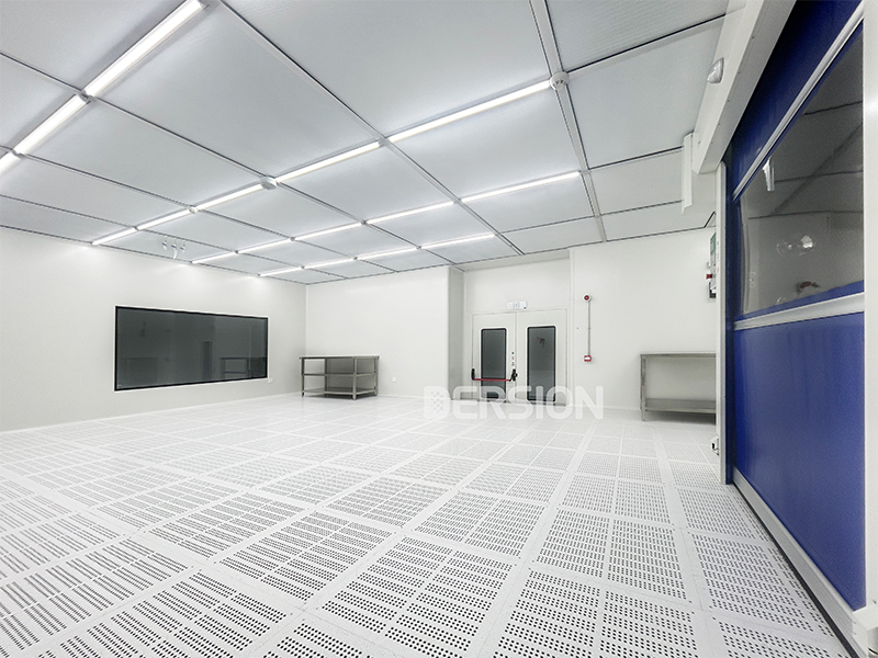 本无尘室工程项目结合气体压力容器生产特性,采用多等级洁净分区设计,涵盖class 100级、class 1K级、class 10K级、class 100K级四种洁净等级,温度控制在18-28℃舒适性范围,湿度不做额外控制,适配产品生产的核心需求。其中class 100级(百级)区采用高架地板垂直层流设计,有效保障洁净气流均匀分布,杜绝微粒污染;其余区域采用环氧自流平地面,具备耐磨、易清洁、防积尘的优势。围护结构选用净化岩棉板搭配中空玻璃,兼顾洁净性与保温性,同时配备人淋、货淋等专业净化设备,从人流、物流源头阻断外界污染,全方位保障生产环境达标,并且人淋、货淋通道分开设置,避免交叉污染。
