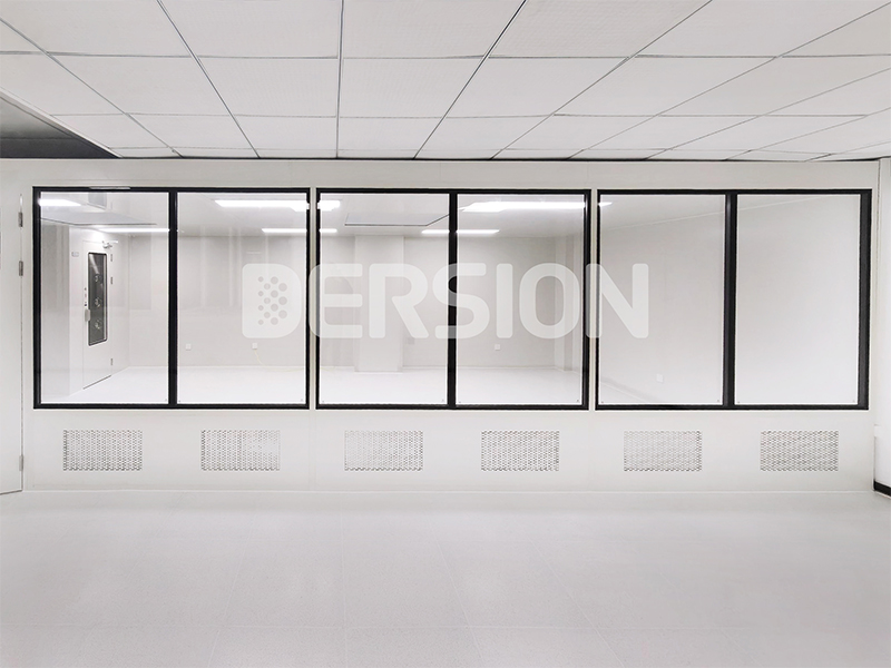 本洁净室项目以模块化设计为核心,严格遵循万级洁净标准匠心打造。模块化洁净室主体结构采用手工岩棉板与双层中空玻璃组合,既保障了结构的稳固性与密闭性,又通过通透质感与简洁线条呈现高颜值外观;内部吊顶采用丝杆吊结构,安装高效且承重可靠,完美契合模块化快速搭建与后期调整的需求。气流组织采用顶送侧回设计,搭配 FFU(风机过滤单元)与高效过滤器的黄金组合,可快速过滤空气中的微粒杂质,确保洁净度持续达标。控制系统配备7寸液晶触摸屏,实现运行参数的实时监控与便捷调节;同时配套1台风淋室与1个普通传递窗,分别完成人员除尘与物料洁净传递,全方位阻断外界污染。